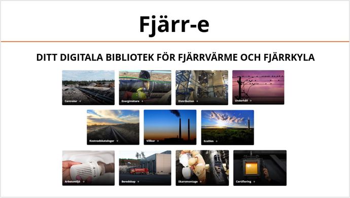 Energiföretagens riktlinjer för fjärrvärme och fjärrkyla utgör grund för installation, utförande och underhåll enligt vägledning och god praxis för medlemsföretagen vad gäller arbetsmetoder och tekniklösningar. Riktlinjerna kan även utgöra stöd och praxis för myndigheter, konsulter, entreprenörer och fastighetsägare. Fjärr-e ger tillgång till tekniska bestämmelser och rapporter, handböcker samt vägledningar i syfte att stödja arbeten med installationer för att upprätthålla effektiv drift, funktion och hållbara tekniklösningar. Målgruppen är i huvudsak alla som arbetar med fjärrvärme och fjärrkyla från produktionsanläggningar, distribution och dess kunder.